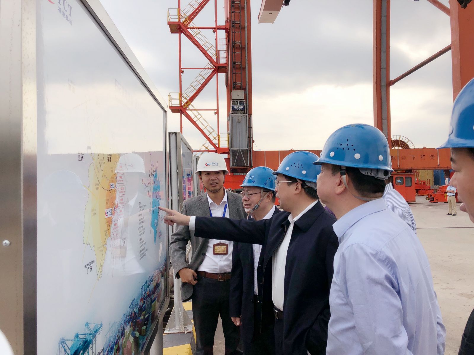 11月6日,省交通运输厅黄祥谈厅长实地调研福州港务集团青州集装箱码头,认真听取了福州港务集团当前港口运行情况介绍,对今年以来集装箱生产良好业绩和发展态势给予肯定,希望能继续发挥好港区自然条件、区位、铁路等优势,进一步扩大腹地货源,做强做优做大福州港。福建交通集团李兴湖董事长、省福州港口局徐伦焕局长、福州港务集团陈剑钟总经理、郑明副总经理等参加调研。