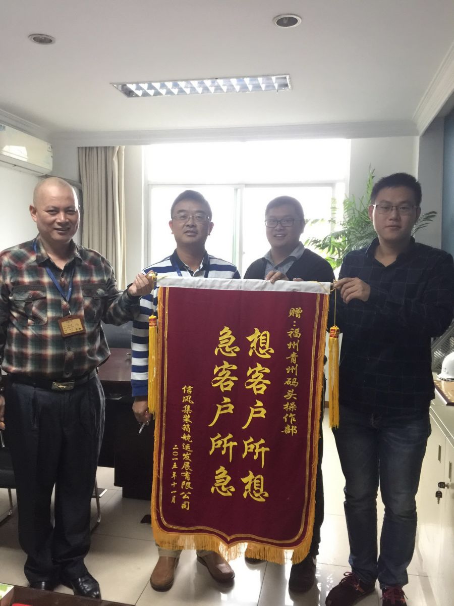 11月4日上午福港集箱青州港区操作部收到宁波营港利信物流有限公司送来的一面写着“想客户所想,急客户所急”锦旗,衷心感谢公司为客户提供的优质服务。