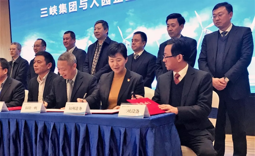 1月21日上午,福州港务集团有限公司与长江三峡设备物资有限公司于福建三峡海上风电产业园内签署战略合作协议。福州港务集团有限公司总经理林少红,长江三峡设备物资有限公司党委书记、董事长熊志刚、副总经理蔡肇斌参加了签约仪式。