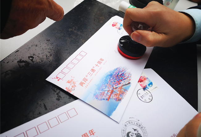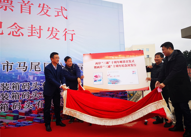 两岸“三通”十周年之际,由中国邮政发行的《两岸“三通”十周年》纪念邮票(一套一枚)及由福州市马尾邮政分公司协同福州集邮协会制作的两岸“三通”纪念封(一封)首发仪式于12 月15日在福州港青州港区举行。本次活动由福州市马尾邮政分公司与福港集箱联合主办。