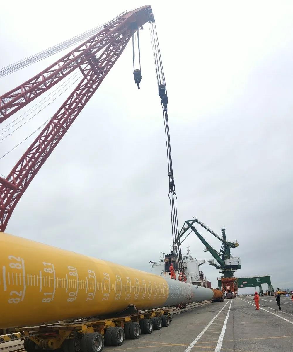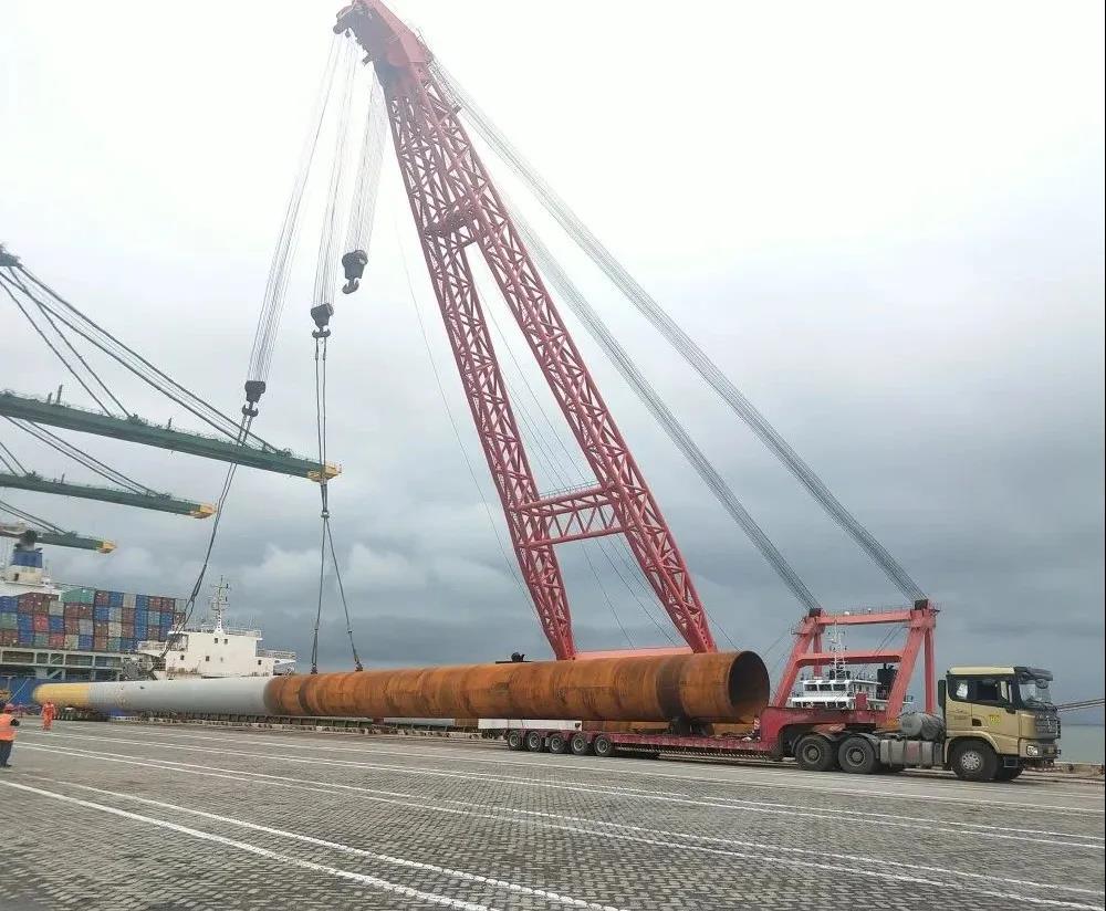 6月6日,福港物流运营的600吨浮吊“维新海工一号”将六件管桩顺利吊装至“南顺18”轮,成功完成首次重大件货物吊装。此次装船的6件管桩由福建三峡海上风电产业园水电四局生产,发运至广东阳江沙扒海上风电场,总重约1174.26吨,总体积约3287.5立方米,最大单件重量达196.36吨,长度达88米,细致贴心服务赢得了客户的肯定和赞赏。本航次浮吊的顺利作业,标志着福港物流在临港工程物流领域取得新突破,同时也为全面助力福建省海上风电产业建设打下坚实基础。