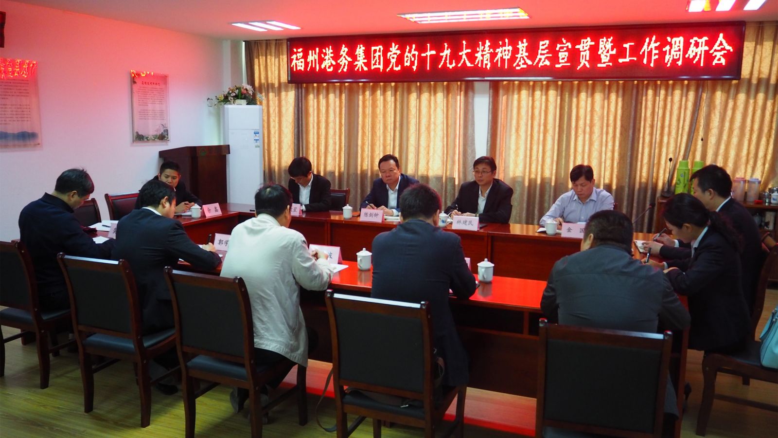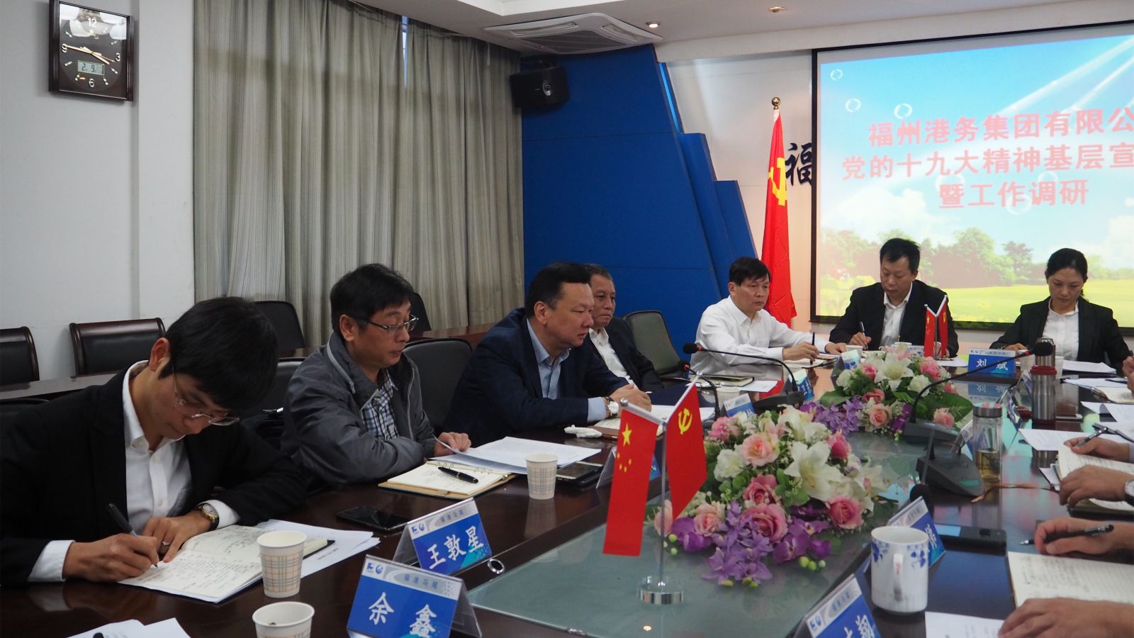11月21日-23日期间,集团领导带领有关职能部门负责人调研了福港马尾、福港集箱、福港拖轮、东方海运、福港物流、迅腾、外理、中联等8家所属全资、控股子公司。调研中,集团领导充分听取了所属单位领导班子成员及相关部门负责人的工作汇报、下阶段工作意见,以及对集团未来发展的想法和建议。肯定了各家单位今年以来取得的工作成效,鼓励大家不忘初心,牢记使命,全力冲刺年终各项任务指标;提振信心,勇于担当,为集团明年事业发展作出应有的贡献。要求各单位要将认真学习贯彻党的十九大精神贯穿到今后的党建工作中,做到基层宣贯全覆盖,推动党的十九大精神贯彻到基层落实到一线。