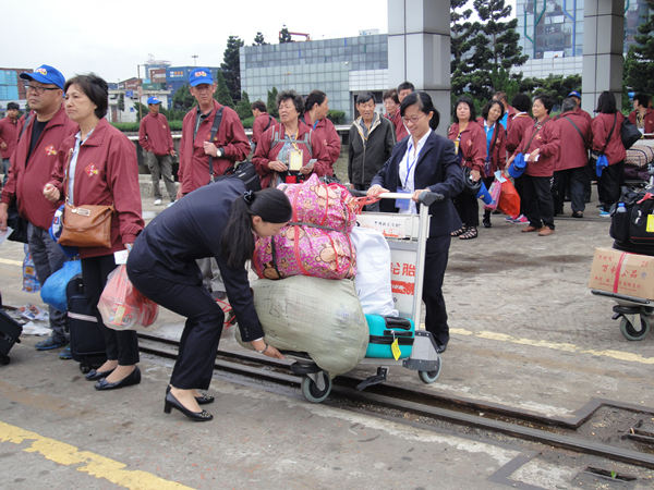 为确保进香团返乡顺利,福州港客运站积极与外代、口岸各联检单位沟通协调,为“合富快轮”提供专门的停靠码头与泊位,同时增开专用通关查验通道,对进香团携带的神轿、神像、三角旗等大件民俗物品,采取客货分离的便利通关方案,有效缩短了进香团旅客的出港通关时间。同时,站里在码头前沿增派人员搬运行李器具、扶助老幼,保证团队通关安全有序,优质便捷的客运服务和文明整洁的客运环境受到台胞香客的一致好评。