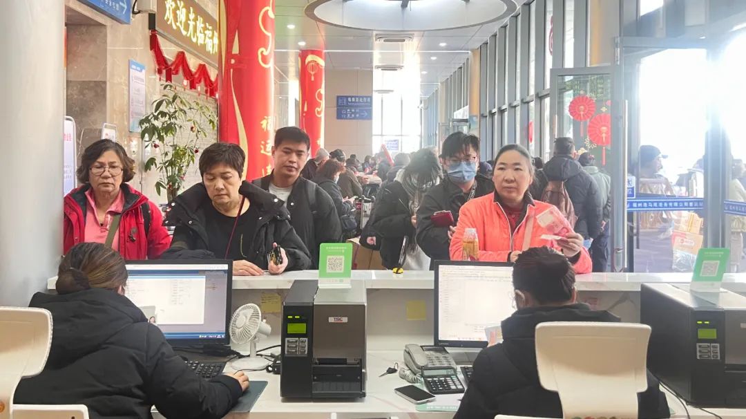 从1月14日春运启动到2月12日元宵节,航线客流量持续高涨。客运站年味浓厚,中国结、船型打卡点、福文化形象IP“福宝”,各种元素齐汇聚,点亮首个世界非遗版春节。