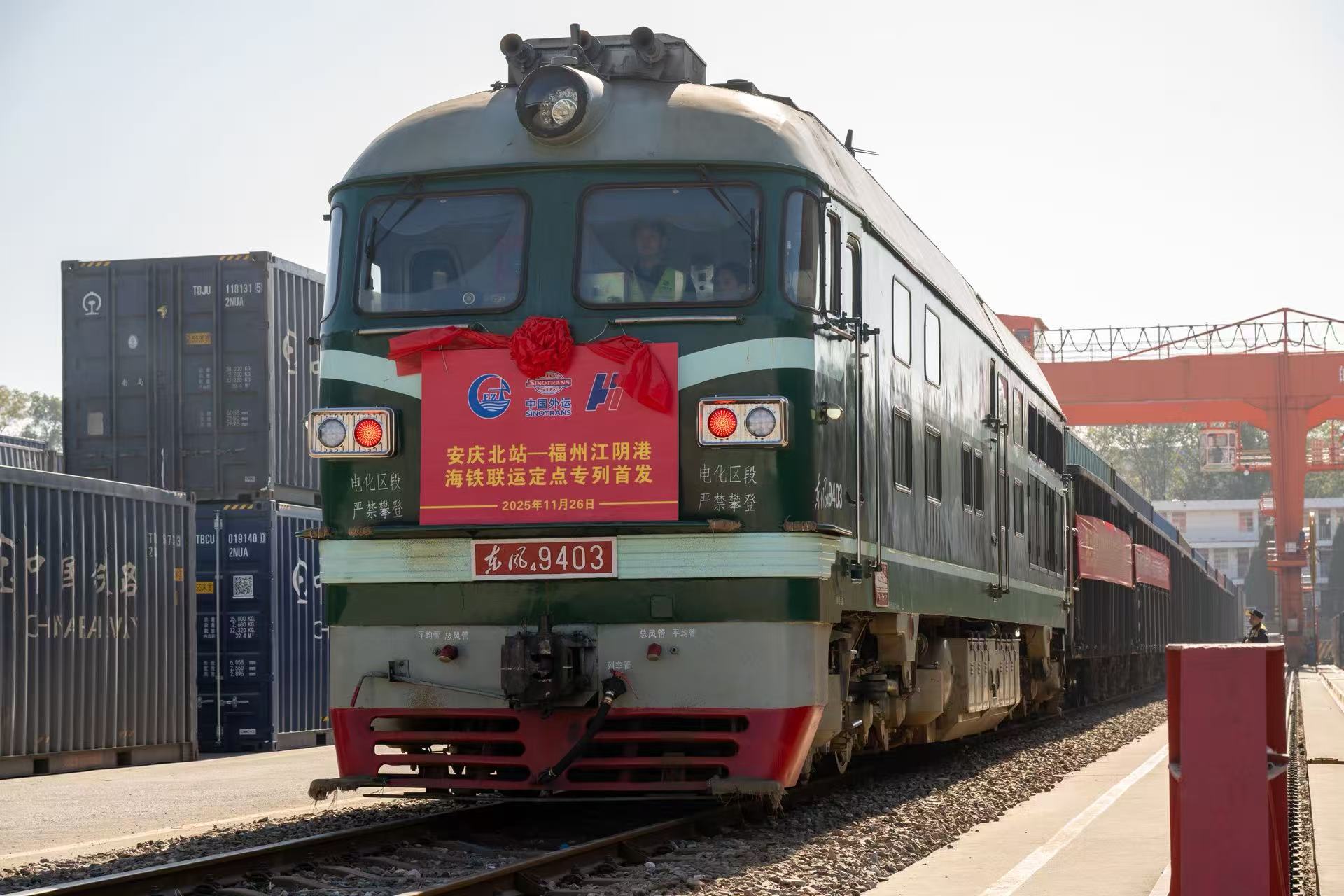 11月26日,“安庆北站—福州江阴港”海铁联运定点专列正式首发。专列满载48个40英尺集装箱货物,跨越千里抵达福州江阴港后,将高效衔接对台海运班轮,实现货物的快速中转。福州港海铁联运首次直达安徽腹地市场,贯通陆海通道、深化区域协作迈出坚实步伐。