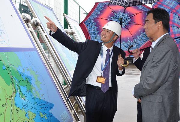 5月7日,福建省海事局局长何易培在福州市海事局王华明局长的陪同下莅临福港集箱江阴港区调研,就福港集箱生产运营及码头泊位建设、未来发展规划等情况进行了了解。福州港务集团副总经理林建民、港务集团总经理助理兼福港集箱总经理郑明、副总经理陈枫等在现场接待了海事局领导一行。