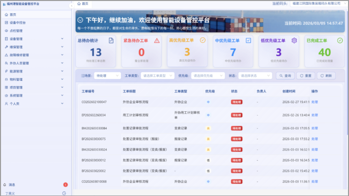 福州港智能设备管控平台立足于福州港务设备智能化管控需求,以“柔性流程+刚性审计”为设计机制,实现了灵活适配与精准管控的统一。在数据层面,系统通过建设“工单数据标准化模型”,打通了不同业务类型港口的设备数据壁垒;在资源层面,首创备件“云仓”共享模式,通过实时映射全集团库存动态与智能调拨,大幅降低资金占用。通过对设备核心数据的实时互联与智能化维保,为未来的AI自动化生产指挥调度筑牢了根基。 平台深度聚焦一线业务场景,未来将进一步通过融合传感器与机器视觉技术,实现设备故障的主动预警与智能诊断,并依托与仓储管理系统(WMS)、集装箱作业系统(TOS)、设备控制系统(ECS)等核心系统的互联互通,构建从故障预警到备件配送的全链条闭环。 本次系统的成功上线,是福州港务集团在设备资产管理领域迈入数据驱动、智能决策新阶段的关键里程碑,为集团“十五五”信息化建设注入了强劲的起跑动能。