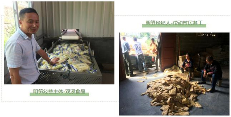 都团村四面毛竹山环抱,竹山面积1.07万亩,笋竹资源丰富,是农民收入的主要来源。第一书记杨辉依托笋竹资源优势,发挥党支部引领作用,鼓励引导懂经营、会管理、有实力的党员带头领办创办起恒承食品,翠源食品、双溪食品3家规模笋制品企业,12名党员发展成为笋制品新型经营主体产业经纪人,带动村民发展溪源明笋产业,人均增收5000余元。