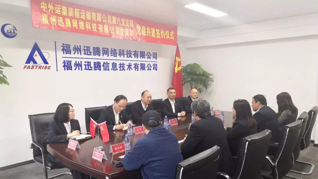 为深入学习贯彻习近平新时代中国特色社会主义思想,创新党建工作机制,丰富党建工作载体,释放党建工作活力,提高党建工作质量,充分发挥党建核心引领作用,2019年12月10日,迅腾公司党支部与中外运集装箱运输有限公司第八党支部签订《党建共建合作协议》。