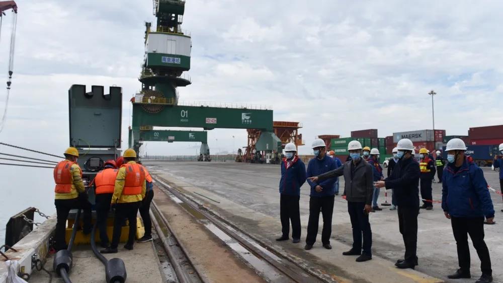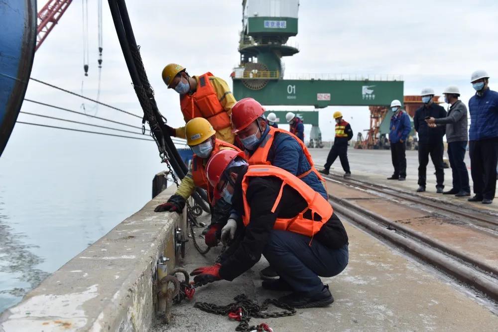 福港集箱高度重视此次高压岸电连船送电作业,详细了解船舶接岸电需要注意的相关事项,组织人员培训,周密策划泊位,精确安排工班,确保现场操作的顺利进行。福州港务集团副总经理杨建国现场参加岸电连船作业。