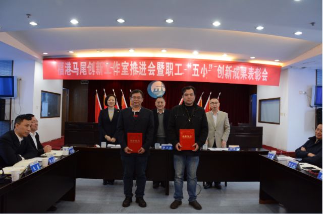 3月21日上午,福港马尾隆重召开创新工作室推进会暨职工“五小”创新成果表彰会,公司领导、创新工作室成员、技术人员代表、获奖项目带头人等共40多人参加了会议。会议展示了创新工作室成立一年来取得的成绩斐然,技术创新成果实,人才培养卓有成效,解决了港口生产急需的技术难题,为公司降本增效200多万元。多名技术人员在会上分享了参加创新工作室心得体会。会议还表彰了2016-2017年度“五小”创新优秀成果一、二、三等奖。