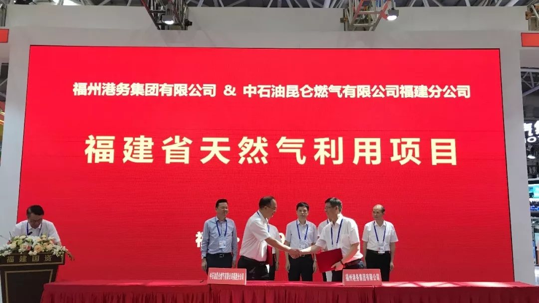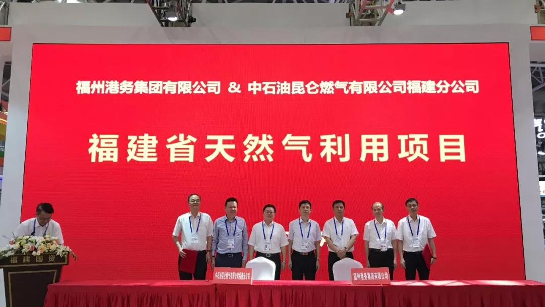 在6月19日的省交通集团签约专场,福州港务集团副总经理林建民代表集团与中石油昆仑燃气有限公司福建分公司签订《福建省天然气利用项目战略合作框架协议》,福建省国资委党委委员、副主任林立,福建交通集团党委书记、董事长李兴湖、党委副书记、总经理陈可香,福州港务集团党委书记、董事长陈剑钟等出席并见证签约仪式。未来双方将发挥各自优势,合作开发天然气和液化石油气码头项目,探索天然气能源在港口物流设备的应用,共同致力改善福州市大气环境,优化港口物流行业的能源结构。