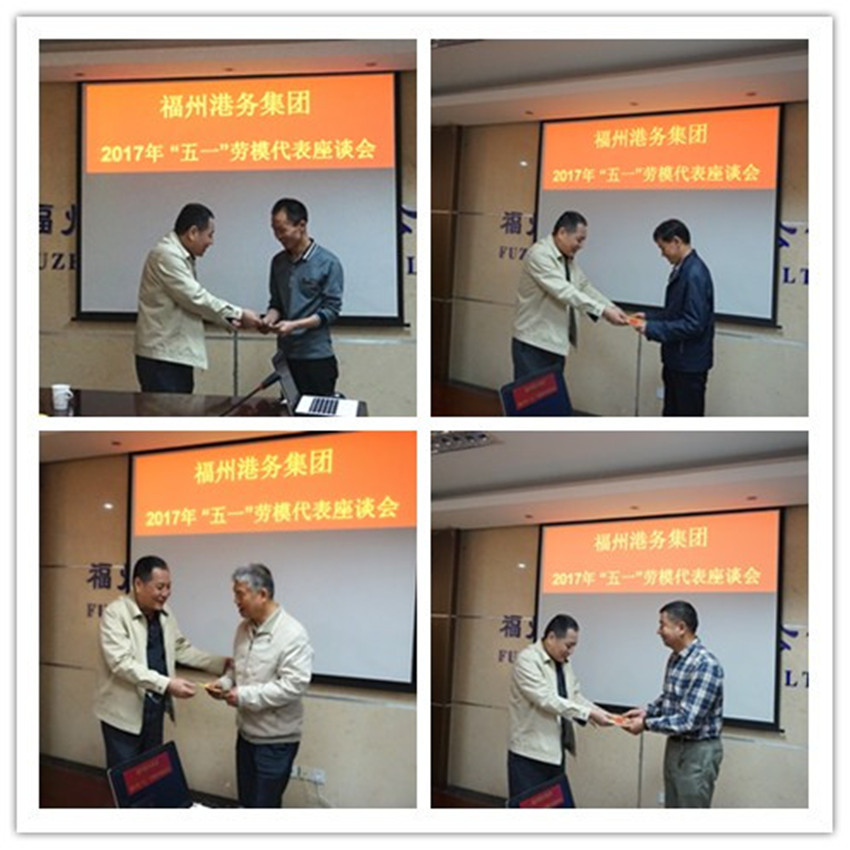 4月27日下午,福州港务集团党委罗卫东书记主持召开庆“五一”在职劳模代表座谈会。会上,罗书记代表集团慰问历届劳模,认真听取劳模的劳动感想,并发表讲话。他首先代表集团衷心感谢以劳模为代表的全体员工在港务集团从内河港到深海港的跨越式发展历程中作出的历史性贡献,给集团的全体员工致以节日的问候和祝福!罗书记勉励劳模紧跟时代脉搏,适应新的形势需要,走在时代前列,带领员工发挥一技之长,踊跃参加各项劳动竞赛、技术比武、技术创新,创建好“劳模工作室”,在港务集团新的跨越式发展征程上再立新功。他要求劳模要有“向我看齐”的勇气和担当,在全集团进一步营造“学习劳模、学习先进、争当先模”的企业氛围,以劳模精神引领带动全体员工干事创业的激情,为集团“十三五”规划建功立业,再创辉煌。罗书记还要求集团工会等相关部门要做好劳模先模人物的服务工作,关心他们的生产生活和学习,让劳动光荣、创造伟大成为铿锵的时代强音,让劳动最光荣、劳动最崇高、劳动最伟大、劳动最美丽在集团蔚然成风。