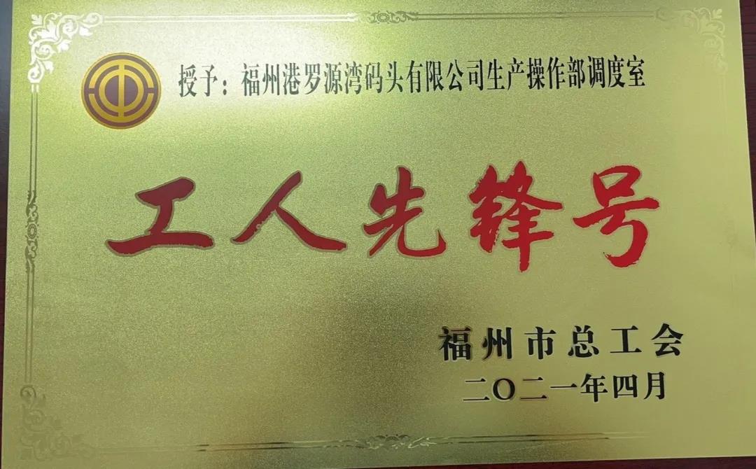 日前,福州港罗源湾码头有限公司荣获2020年度福建省“安康杯”竞赛先进单位;福州港罗源湾码头有限公司生产操作部调度室荣获福州市总工会“工人先锋号”称号。