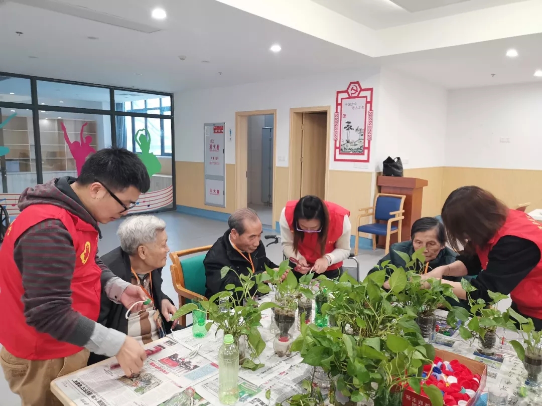 在宽敞明亮的活动中心,志愿者们与近30名老人共同绘画、制作盆栽、齐做工艺品、同唱祝福歌,一同聊天讲故事等,活动项目丰富,短短的一个周末下午,参加活动的老人们始终笑容满面,笑声不断,眼中流露出赞许的目光。志愿者们同样也在给予中收获了感悟和动力。