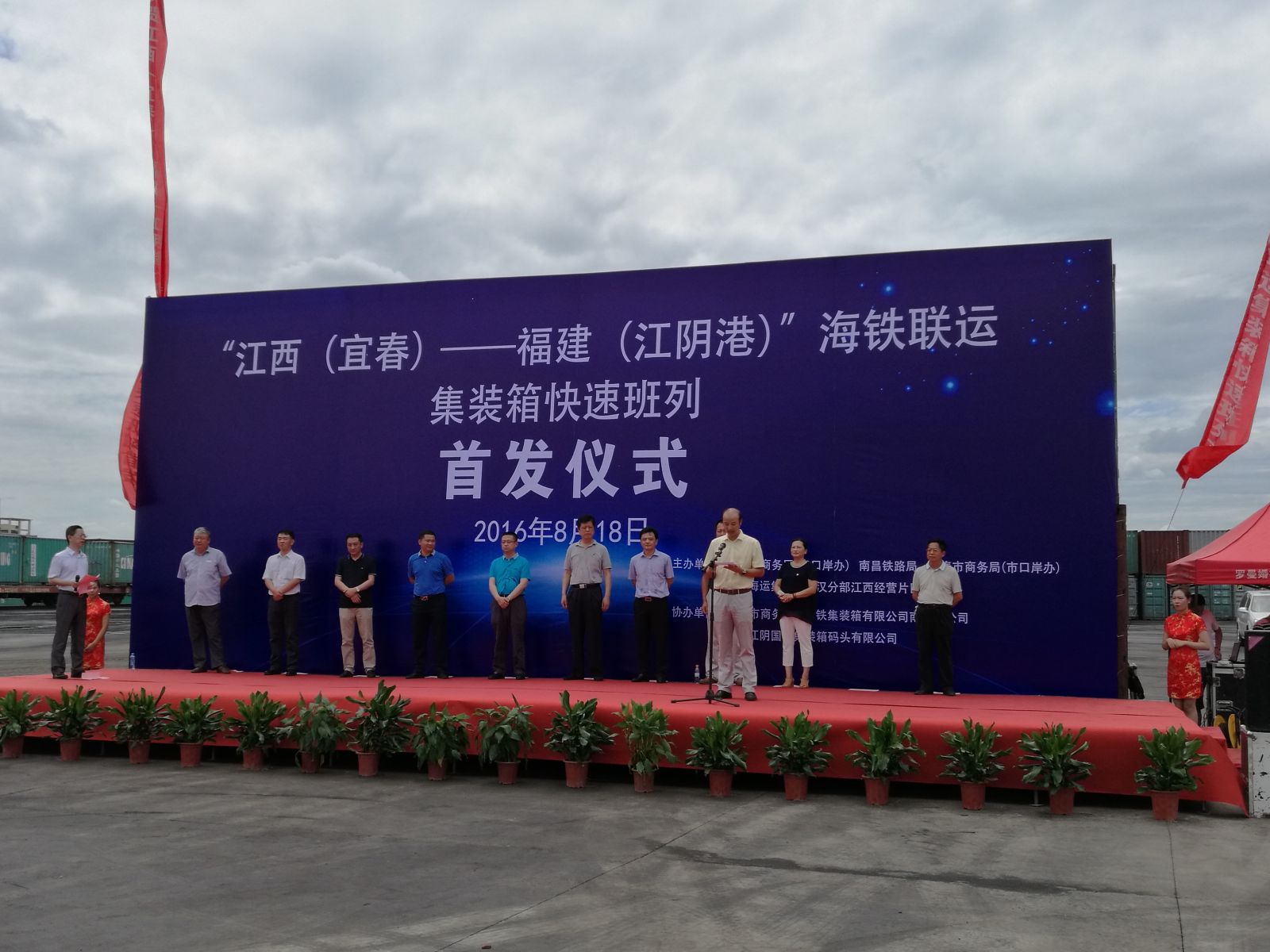 8月18日上午11:30伴随火车的鸣笛声,首批载有40个20呎集装箱货物的快速班列缓缓驶出宜春市张家山站,标志着福州港首列集装箱快速班列正式启动。南昌铁路局指定快速班列车次号为79620、79619次,该班列先期暂按每周1列组织,后续视货源情况可再增加开行密度。首批集装箱货品主要装载樟树、高安地区工业盐、瓷砖等货物,总货值约98.16万美金。