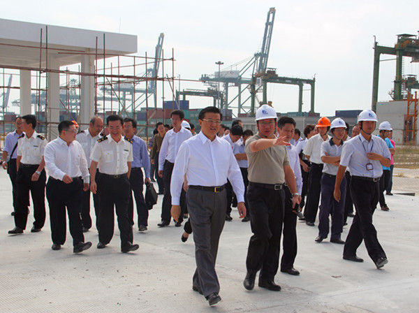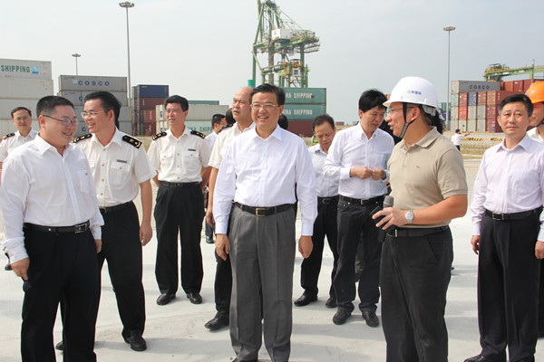 10月26日上午,倪岳峰副省长一行莅临江阴港区参观指导整车进口项目情况。倪副省长深入现场,实地查看了海关监管区和国检检测区的工程进度情况,询问存在问题、提出要求和指导意见,希望各有关单位积极推进、顺利对接,早日实现整车进口项目的启动运作。省、市政府有关领导,福建交通集团李兴湖总经理、福州港务集团陈乐章总经理陪同参观。