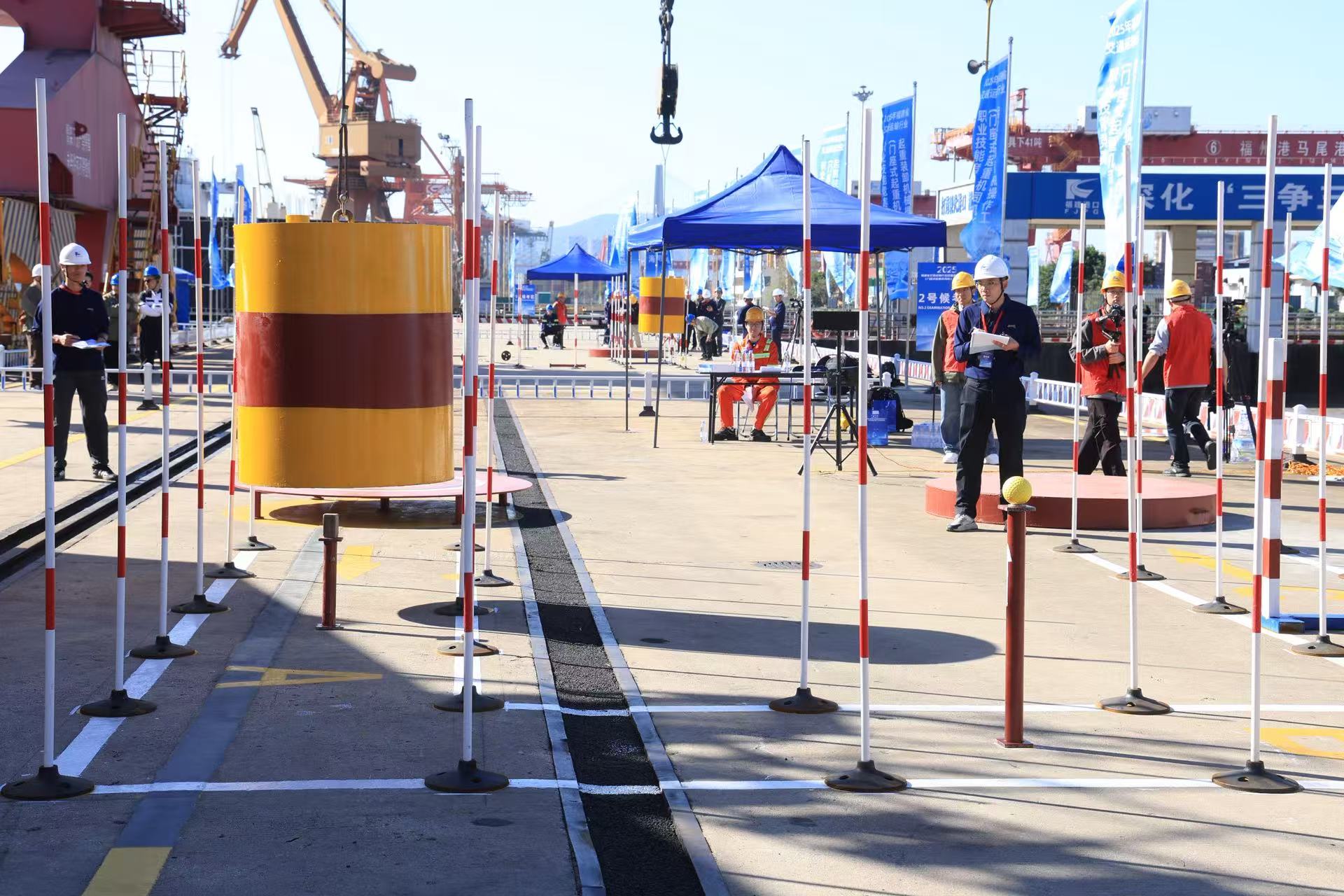 实操考场设在福州港青州作业区5#泊位,设置关路行走、圆桶撞物、限宽门撞物、圆桶轻放、圆桶打靶和平衡水杯等6个项目,考验选手们操作的稳定性和精准度。选手们依次进入门机室,平稳控制门机旋转和变幅,精准完成指定动作,展示出了精湛的专业技术和扎实的功底,生动诠释了“精益求精、追求卓越”的工匠精神。