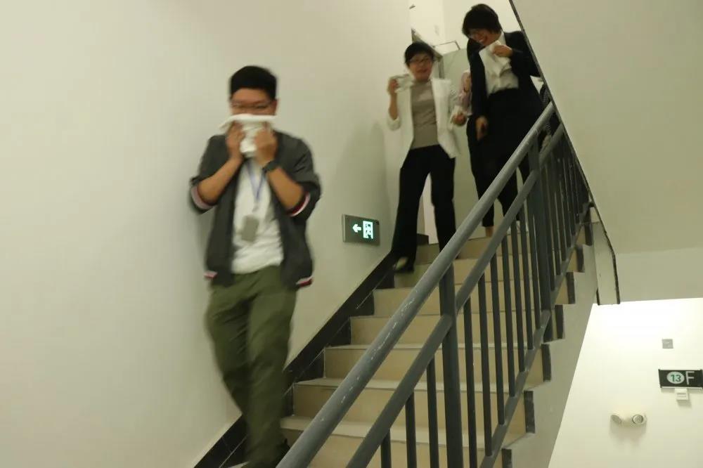 下午,本部组织消防安全培训,就消防安全,火场逃生线路、过滤式消防自救呼吸器、灭火宝、灭火器的使用及注意事项给现场员工进行讲解,并组织开展高层建筑人员应急疏散演练。
