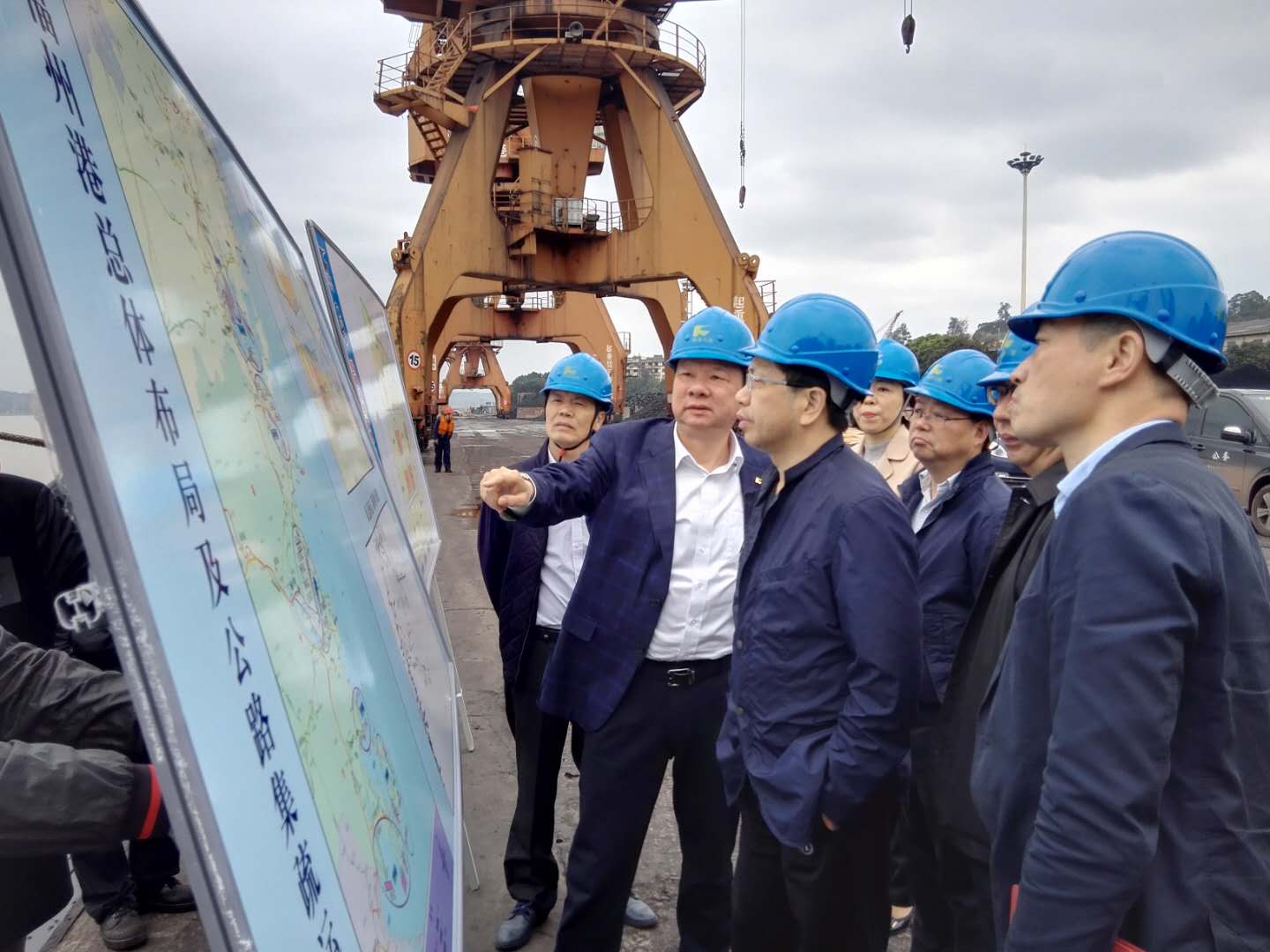国资委检查团一行深入码头现场,实地调研参观了各港区,并听取了福建交通集团、福州港务集团负责人所做汇报,认真了解了罗源湾港区、马尾港区及江阴港区的生产及发展情况,重点关注了罗源湾大型散货码头及江阴港区集装箱码头“南集北散”发展战略的实施情况。