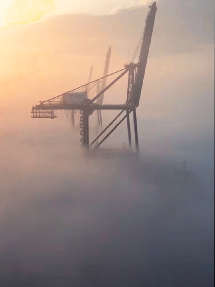 3月15日下午,大雾封港。(图片为江阴港区操作手拍摄,非本文配图)