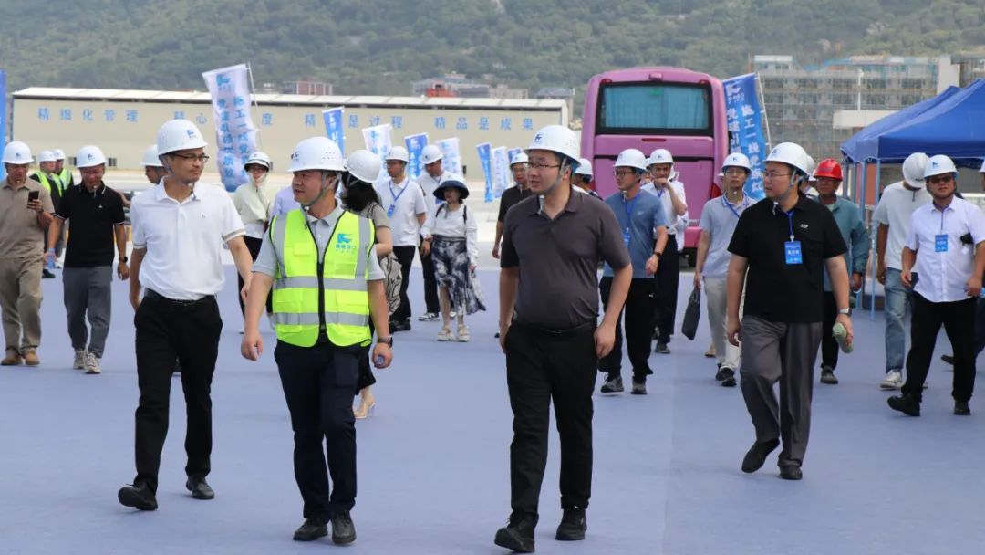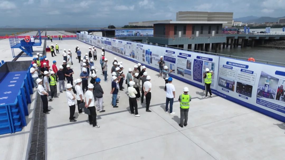 为深入贯彻落实平安百年品质工程理念,推动水运工程建设高质量发展,福建省水运平安百年品质工程示范创建现场观摩会于7月4日在福州港松下港区元洪作业区1#、2#泊位工程现场举行。 本次活动由省港航事业发展中心、省交通建设质量安全中心、省福州港口发展中心、福州港水运质安站共同主办,福清万业港口有限公司、福建省港口工程有限公司承办。来自省交通运输厅、省港航事业发展中心、省交通质安中心、省福州港发中心等单位相关领导,以及省内各地市相关主管部门及大中型水运工程项目参建单位代表共计100余人参加交流活动。
