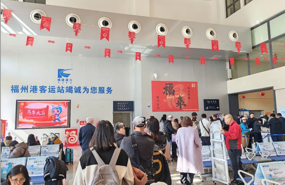 春节假期,福马“小三通”航线在返乡探亲与旅游热潮的双重驱动下,客流持续攀升,客运站(琅岐、黄岐)累计输送旅客超3900人次,同比激增53.63%,创历年春节假期客流量新高。2月22日单日服务往返旅客近700人次,创春节客流峰值,以高效保障与温情服务书写两岸亲情新篇章。