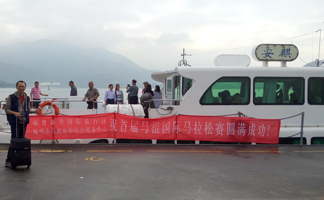 2015年11月7日上午,今年“两马万人游”活动首发团200多名旅客在福州港马尾客运站乘坐闽珠八号出发,其中有参加“2015年第一届马祖国际马拉松参赛团”约60名选手。