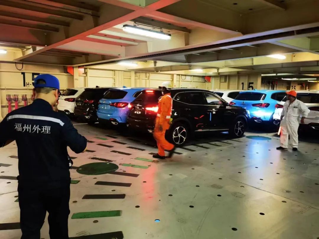 10月25日,2931辆上汽名爵出口整车有序驶上“安吉辰星”号滚装船,发往埃及、德国、英国和意大利等国。面对该航次时间紧、任务重的作业难度,福州外理精心组织精干人员,量身制定滚装船整车出口理货方案,做好后勤保障工作。当班理货人员克服连续倒班作业、理货时舱内闷热、操作不便等困难,积极配合现场指挥作业,理清车型数量、分清卸货港口,实时与船员核对汇总车辆数据,填制单证船图,标明新能源车辆位置,经过2个潮水的辛苦奋战,在预定时间内完成任务,并在最后一辆整车到达配载位置绑扎加固后半小时内完成船方签证,高效率完成该批次滚装船出口整车理货。