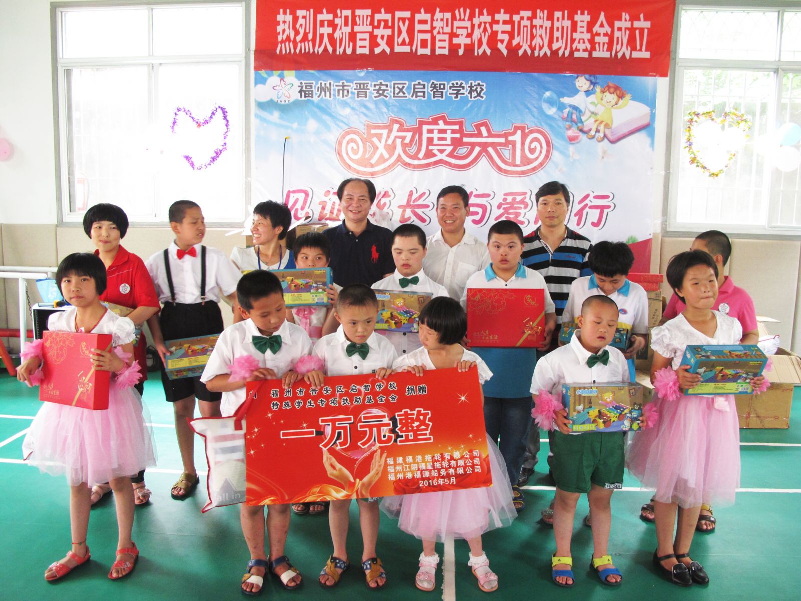 在2016年“六一”儿童节即将到来之际,为了进一步关爱未成年特殊儿童,践行企业社会责任,5月30日下午,福州港务集团所属福建福港拖轮公司开展“六一”关爱特殊儿童慰问活动,慰问了福州市晋安区启智学校学生,并成立了特殊学生专项扶贫基金会,捐资一万元用于扶助家庭困难的特殊儿童。
