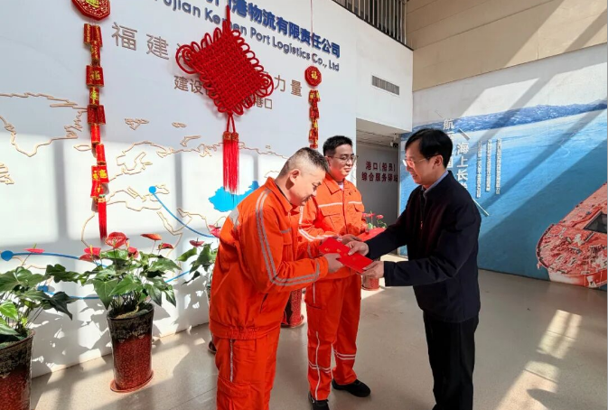 马年新春佳节将至,福州港务集团领导班子分赴各港区一线,开展节前走访慰问活动,向春节期间仍坚守岗位的一线职工致以诚挚问候和新春祝福。 集团领导先后深入各港区码头前沿、调度中心等生产作业现场,实地查看春节期间港口生产运营保障情况,与坚守岗位的一线职工亲切交谈,详细了解节日期间值班安排、安全生产措施落实及生活后勤保障情况,叮嘱大家安心工作、舒心生活,并亲手送上新春的慰问与祝福。一句句关切的问候,一声声温暖的嘱托,传递着集团对每一位职工的牵挂与惦念,将组织的关怀、企业的温暖送到最需要的地方、最贴近的心坎上,让全体职工在岁末寒冬里感受到浓浓温情,进一步凝聚起同心奋进、共促发展的强大力量。