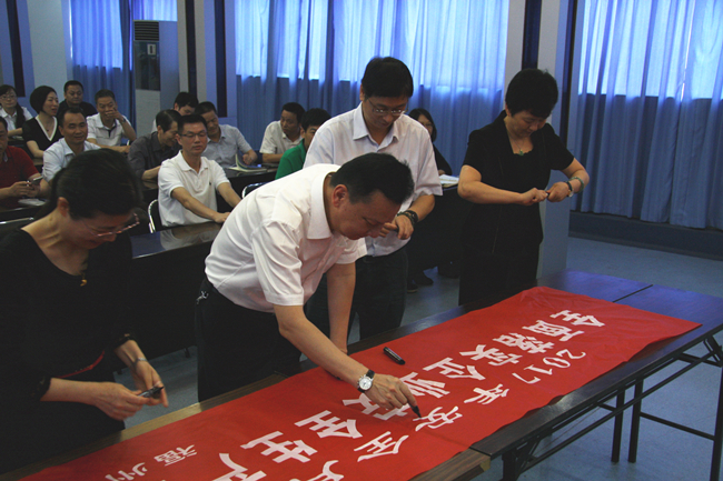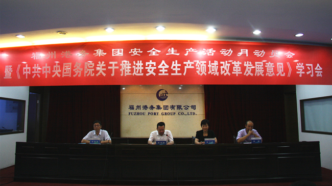 6月5日,福州港务集团在六楼多功能厅召开安全生产活动月动员会暨《中共中央国务院关于推进安全生产领域改革发展意见》学习会,集团领导、总助,正副部门长,各单位总经理、书记、分管安全的副总共50余人参会。 集团总经理做安全月暨《意见》学习会动员发言。并在会上发放《中共中央国务院关于推进安全生产领域改革发展意见》学习资料给各单位及本部各部室。随后,参会人员进行“全面落实企业安全主体责任”主题签名。