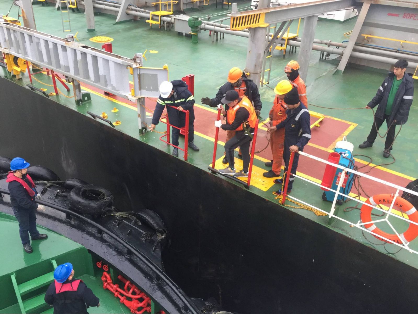 1月4日15:20,在江阴港区待泊锚地的“OREGON”外轮上有一名船员因手指骨折急需救援。福港拖轮所属福星拖轮公司接到险情报告后,迅速启动应急预案,由“福星拖1”前往接送受伤船员。“福星拖1”赶到事发地点,船员们不顾风大浪急与连续工作8小时的疲劳,立即展开对受伤船员的交接转移,19:40分顺利将受伤船员送上码头边等待救援的车辆。目前,受伤船员已经成功进行了手术,伤势稳定。