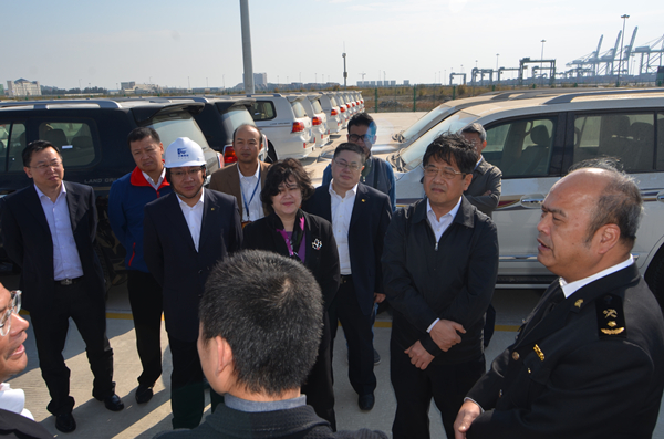 11月22日,福建省副省长郑晓松一行莅临福州港江阴港区考察调研。郑省长听取了江阴港港口建设、航线开发、企业运营及发展前景的介绍,并实地了解了保税港区封关运作3#、4#泊位内外贸隔离围网建设等相关情况。郑省长还察看了港区内整车进口口岸及其检测线、堆场的运作状况: 江阴港区第一批30辆福特越野车整车进口于2012年12月12日通关。目前港区已建成整车进口口岸一期工程。总用地面积约4.9万平方米,其中海关监管堆场用地约2万平方米,共有1096个停车位。今年截止至10月,福州港江阴港区进口外贸整车219辆,包含奔驰、保时捷、路虎、丰田等。郑省长充分肯定了江阴港区整车进口项目的生产运营成果。福建省交通运输集团有限责任公司总经理李兴湖、副总经理兼福州港务集团有限公司总经理陈乐章等在现场接待了副省长一行。