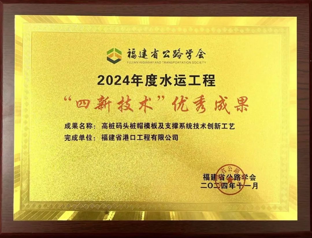 创新裂变:从技术跟跑到标准领跑 党员揭榜挂帅“四新技术”攻关,“高桩码头桩帽模板及支撑系统技术创新工艺”荣获水运工程“四新技术”优秀成果奖。该工艺实现桩帽底模与侧模的安全、快速、精确装拆,做到构件无棱化,提高桩帽施工质量及观感,同时可有效避免波浪冲击对桩帽施工的安全影响。该工艺在2025年全省“水运平安百年品质工程”现场技术交流会上被点名推广。