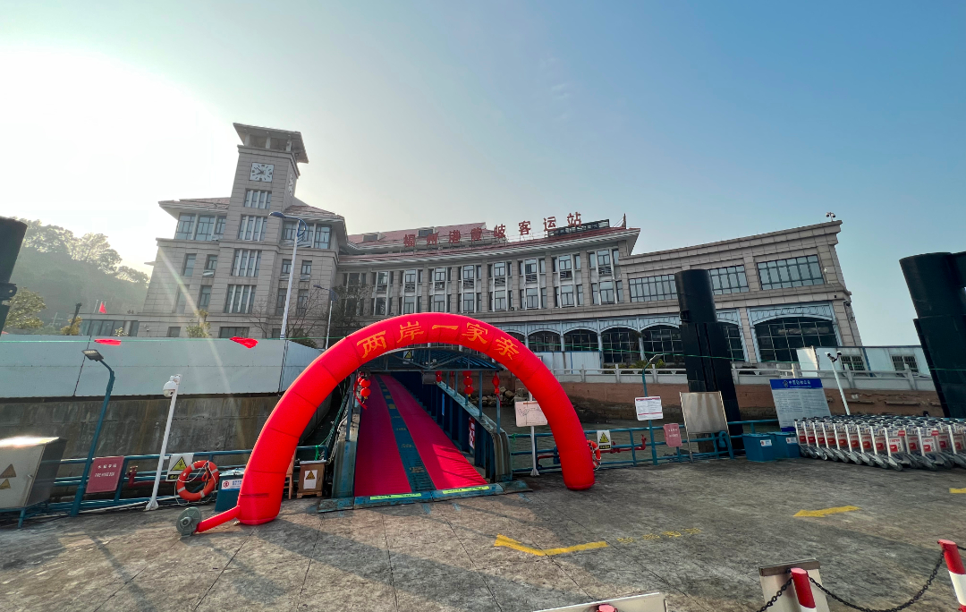 “两岸一家亲,同胞心连心”,从站前广场到客运码头,喜庆的装点、盈盈的笑脸串联起客运现场欢乐的出行氛围。