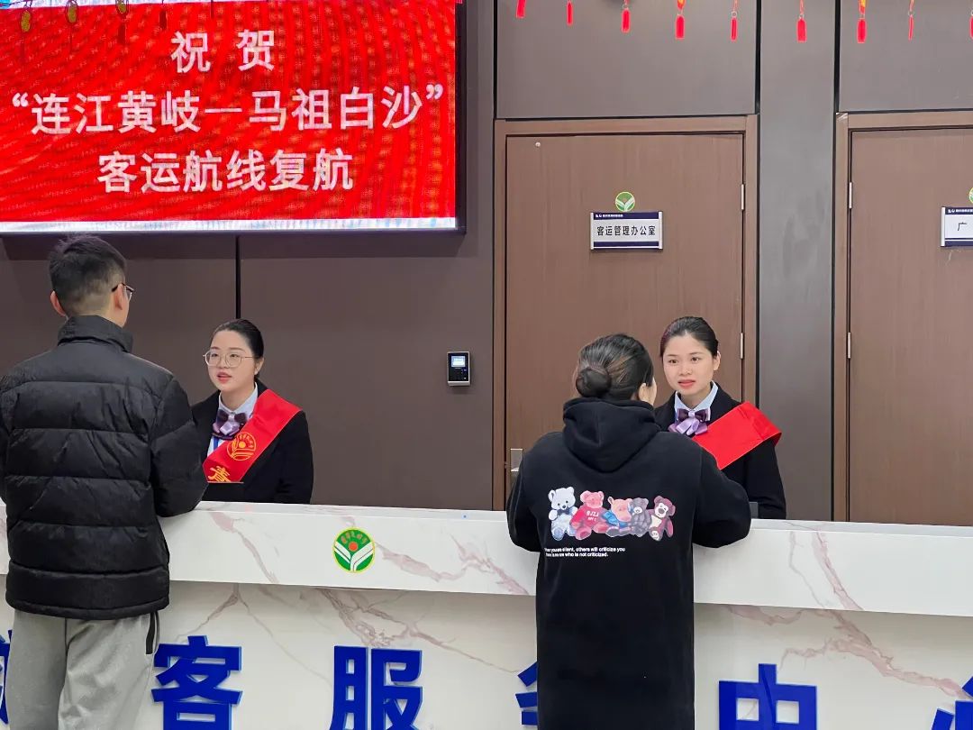 黄岐半岛距离马祖仅一水之隔,是祖国大陆距离马祖最近的地方。如今,为满足马祖乡亲往返需求,因疫情而暂停三年之久的“连江黄岐—马祖白沙”航线按下重启键。 复航首日,福港马尾为客运现场配备充足的人力物力,主动提供温馨服务,致力于打造对台客运窗口服务品牌形象,为两岸返乡旅客打造平安顺畅的出行环境。据统计,当日共有75名旅客往返两岸。