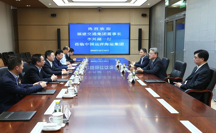 12月14日,福建交通集团李兴湖董事长带队赴上海拜访上海国际港务集团与中国远洋海运集团,积极推进构筑海丝港口战略联盟,打造海上互联互通平台项目合作事宜。福建交通集团陈乐章副总经理,福州港务集团陈剑钟总经理,郑明副总经理,莆田港务集团高雨总经理等一同前往拜访。