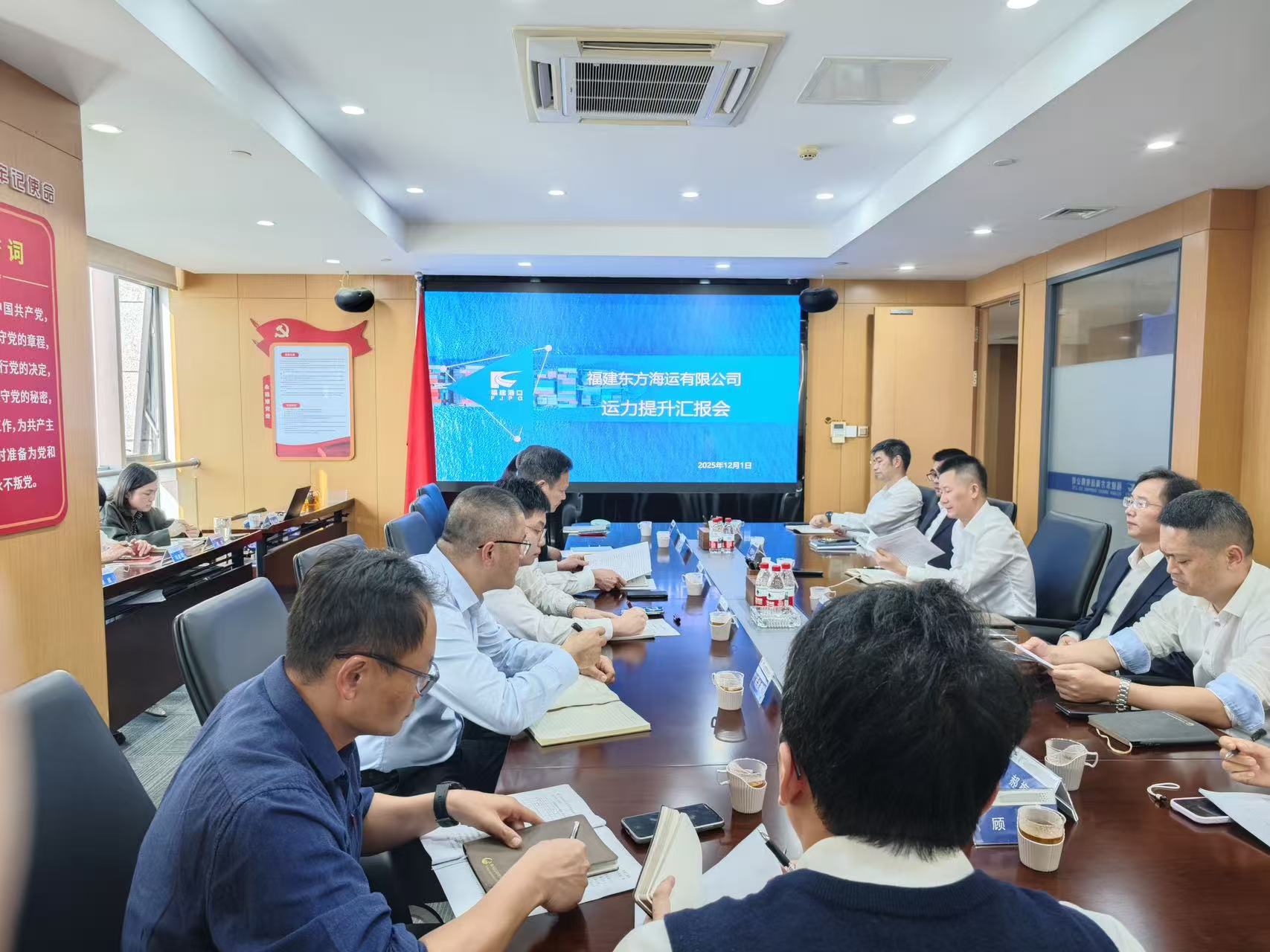 12月1日下午,福州港务集团党委书记、董事长高雨带队到所属福建东方海运开展运力提升专题调研。集团党委副书记、副董事长、总经理熊旭春,党委委员、副总经理黄仲生、谢家清、刘光良及相关部门负责人,东方海运班子参加会议。