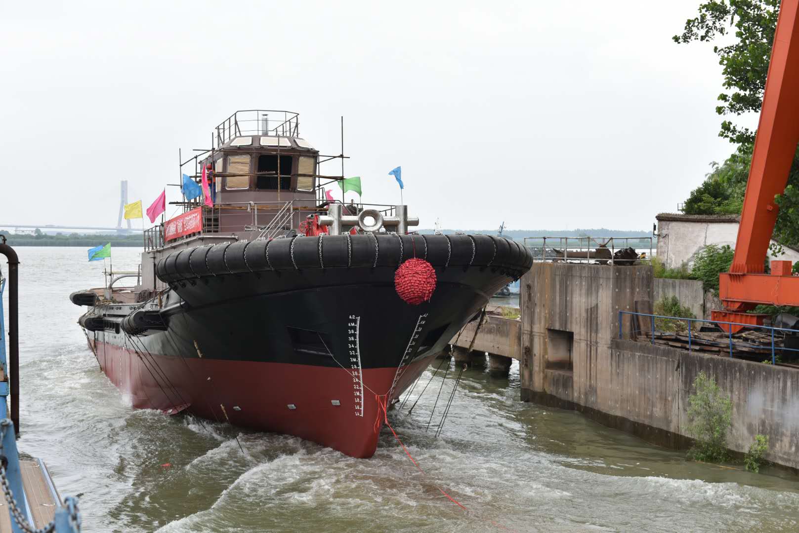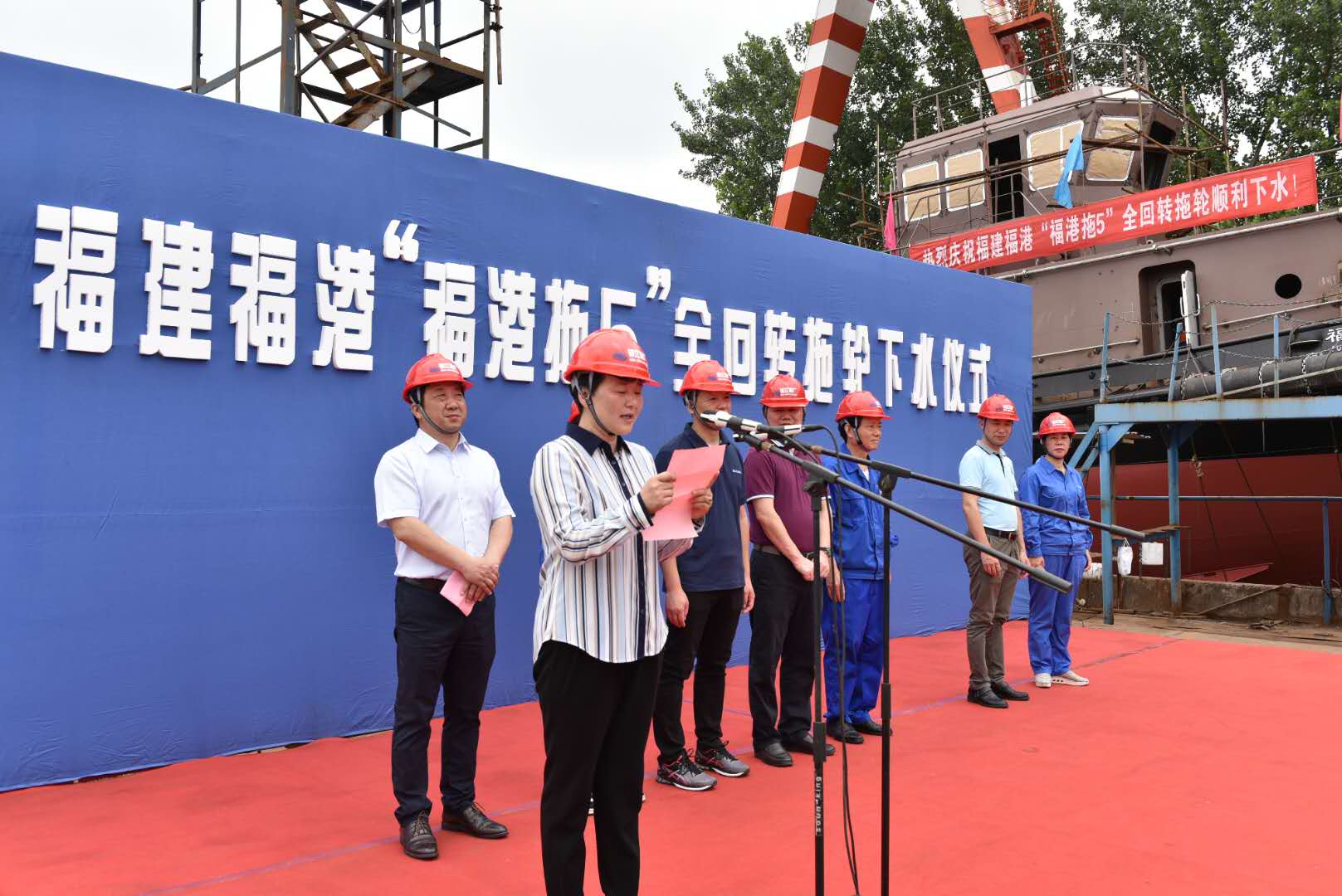 6月20日10时30分,4000匹马力港作拖轮“福港拖5”在江苏镇江船厂顺利下水,福州港务集团总经理林少红,荔兴拖轮总经理李柏然等一行四人及镇江船厂有限公司相关领导出席下水仪式。