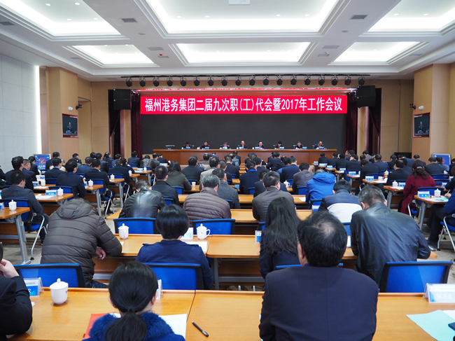 1月19日上午,福州港务集团在交通集团物流信息大厦四楼多功能厅召开二届九次职(工)代会暨2017年工作会议。会议总结了集团2016年度工作,部署2017年度工作,表彰了年度集团各类先进,下发了新一年工资集体协商协议和安全责任书。逾140名正式、列席、特邀代表出席会议,福建交通集团总经理陈可香带领相关部门长莅会指导。