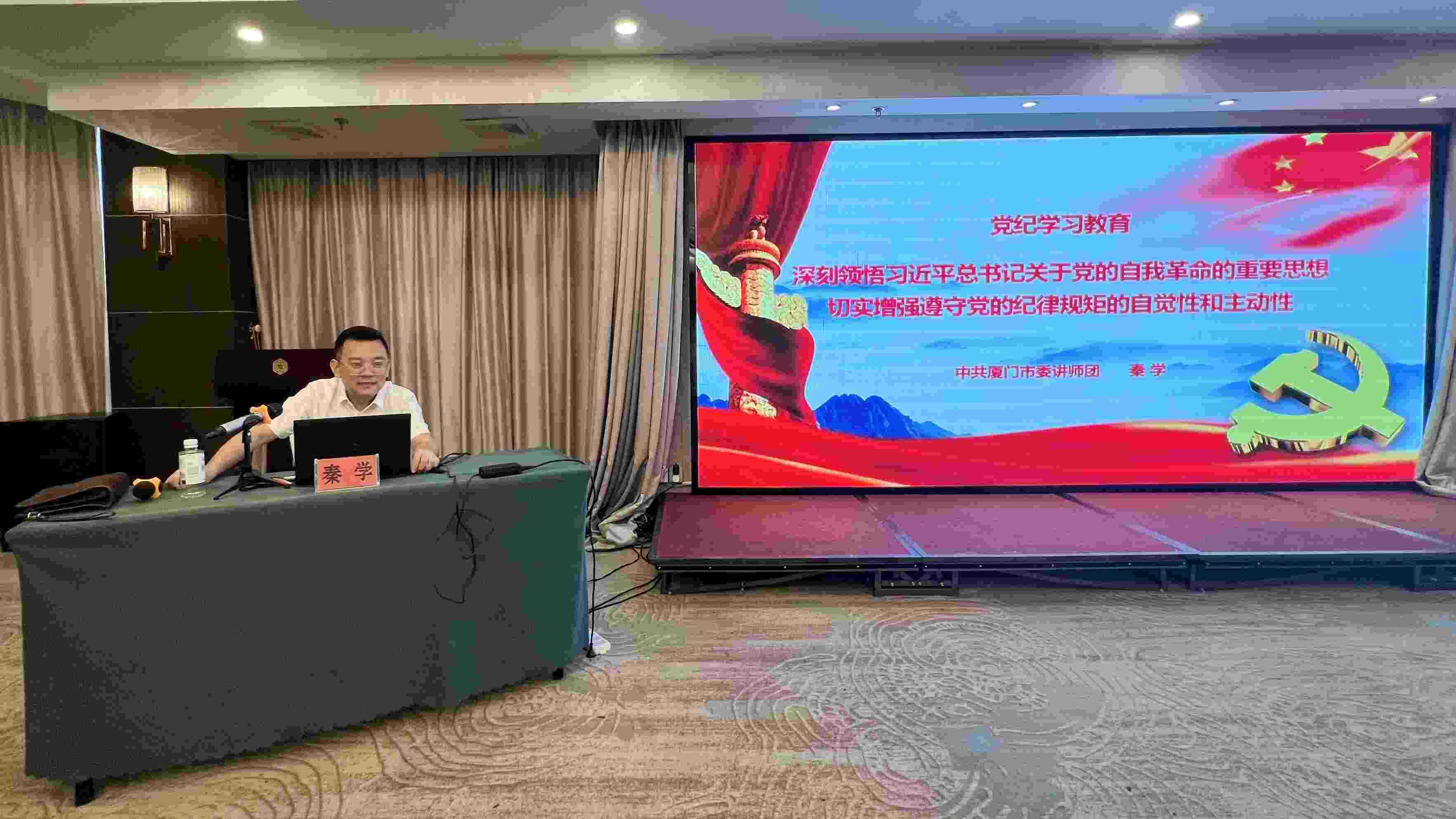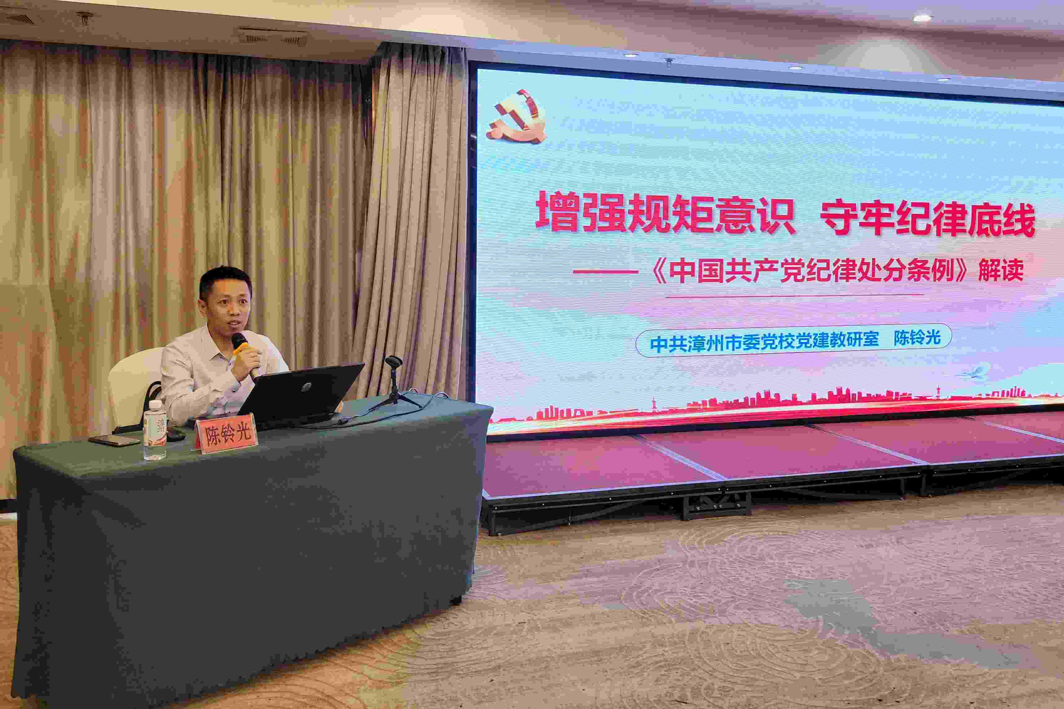 培训班邀请了中共漳州市委党校党建教研室主任、副教授陈铃光,厦门“学习强国”运行中心主任、厦门市委讲师团骨干教师秦学分别作题为《增强规矩意识 守牢纪律底线——